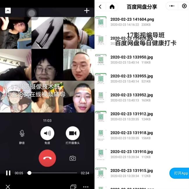 5个毕业班三管齐下防疫战疫、就业准备、论文答辩层层推进,17声像工程班采用微信短消息每日抄送每条信息落实到人,17音像技术班运用wps云文档协作功能及时更新班级学生实习就业最新信息,17影视多媒体班运用MIike CRM线上统计系统每日汇总学生情况,17摄影摄像班通过视频进行集体论文辅导,17影视编导班运用百度网盘进行学生健康码“云审核”制度,学生健康状况一键掌握。