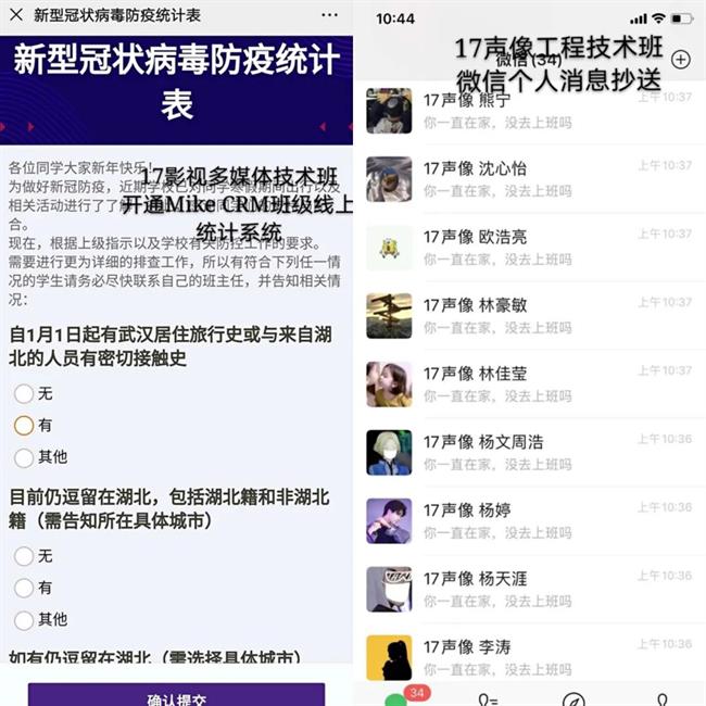 在战“疫”期间,影视技术系的班主任们纷纷拿出学生管理云秘诀,根据自身班级情况开展了不同形式的线上教学管理及学生健康管理追踪,系部18个班级管理班主任班班有绝技。