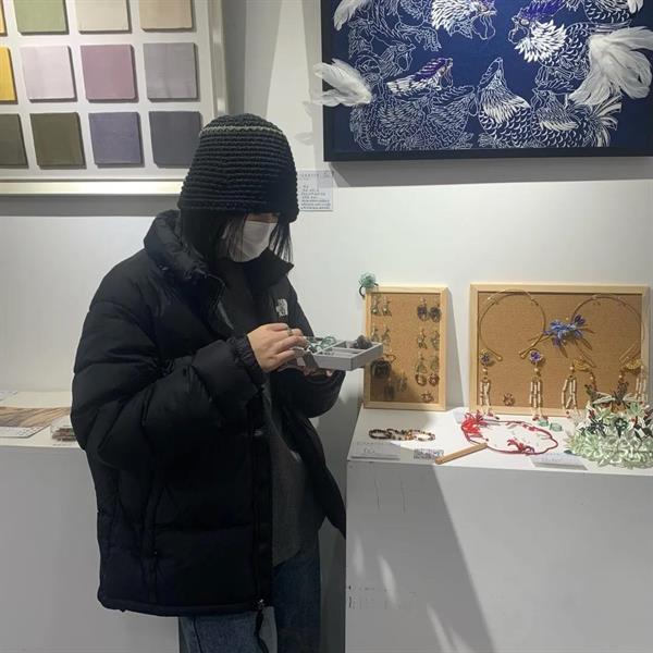 “谁家浴罢临妆女,爱把闲花插满头”花自古以来就是女子作为打扮的装饰品。在头饰花的设计上,融入了现代元素,经过特殊烧制的塑料加上钻石的点缀,“烟熏”出水墨肌理,使其更具时尚感。这样别致的毕业作品来自于2019级民传班的胡雯潇。
