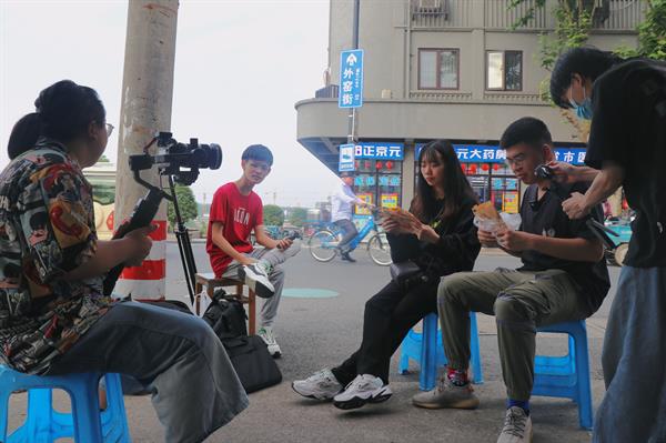 徐旭恒带领“吃在瓶窑”组成员对当地的美食店铺、老街名店进行采风,在过程中体验瓶窑独特的美食烟火与生活气息。在两天的拍摄采风中,徐旭恒现场对同学们拍摄中遇到的灯光、剧本、摄像等技术问题进行现场教学。