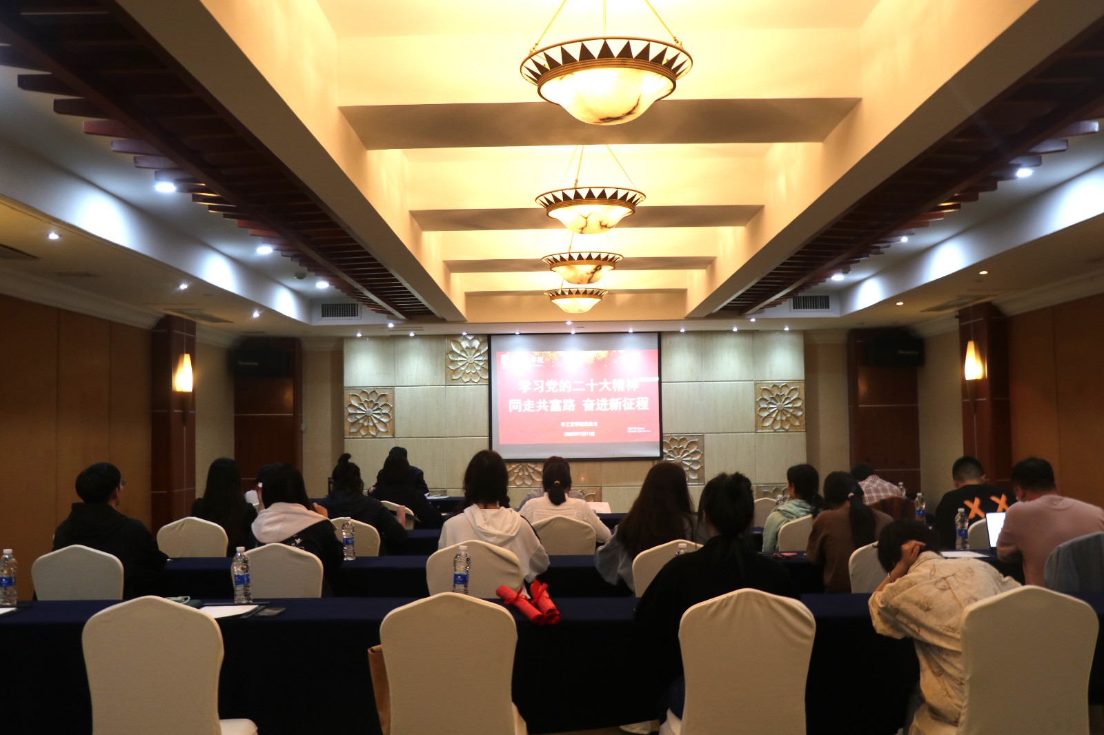 11月11日晚,在淳安县会议室内全体师生党员点亮“夜学”之灯,全面准确,原原本本、原汁原味地深入学习领会党的二十大精神。
