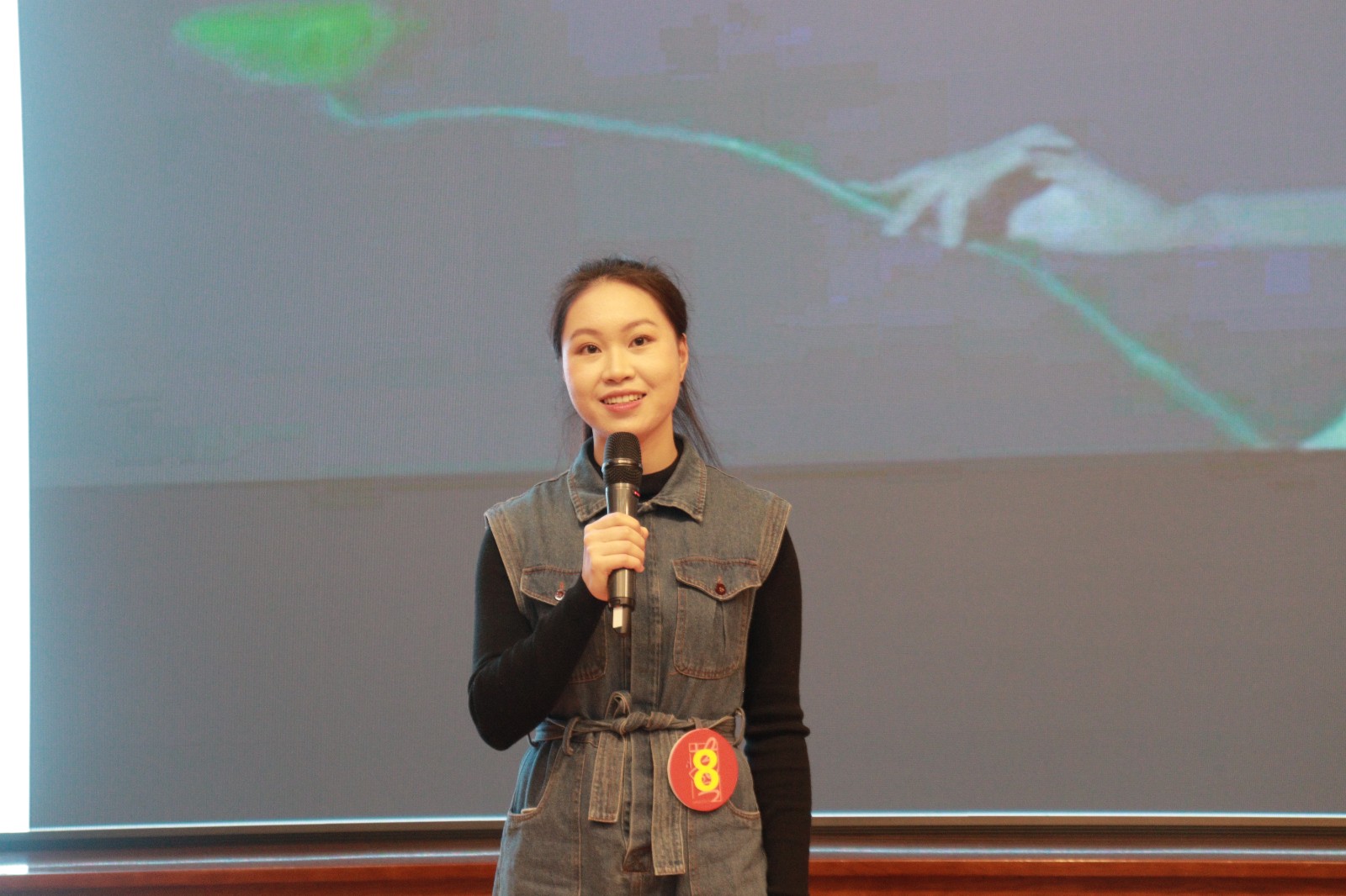 一句 “没有共产党就没有新中国”将现场气氛推向了高潮,洪亮的嗓音为我们揭开了宣讲。闻人柯婷说,唱红歌意在中华民族面临危机时,激发群众的民族意识、爱国意识。她积极用一个个历史故事呼唤大家要扛起历史使命。