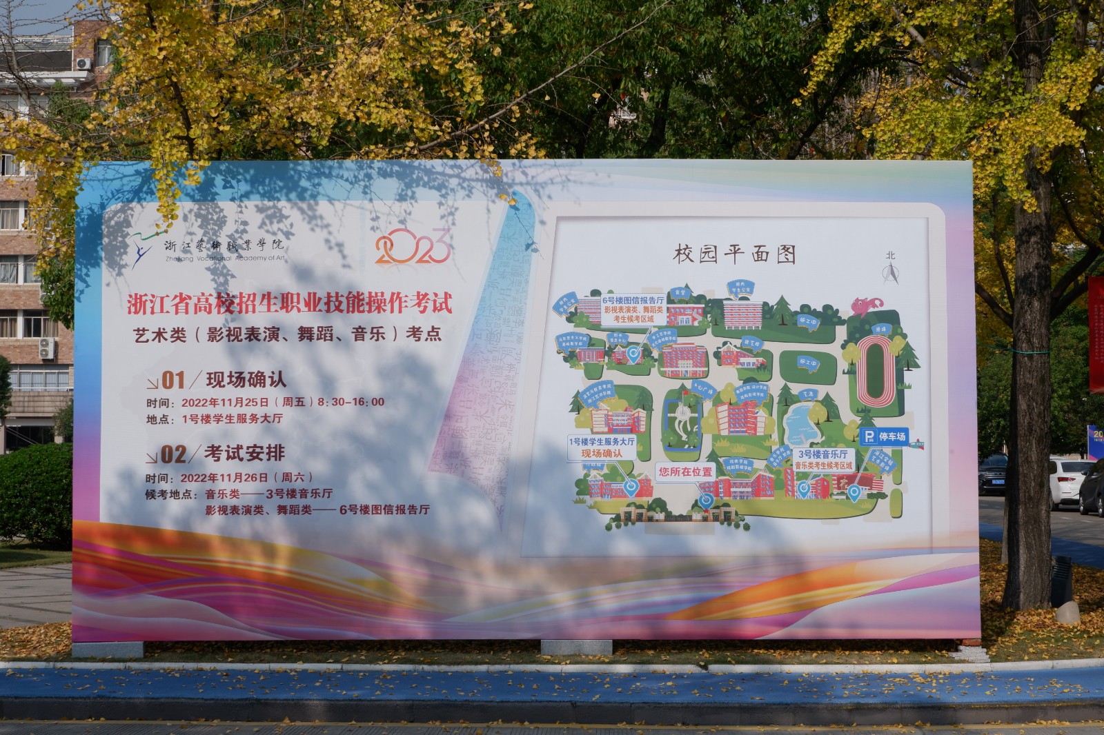 11月26日,虽已入冬,却阳光明媚,落满银杏叶的浙艺校园迎来1006名考生参加2023年浙江省高校招生职业技能操作考试艺术类(影视表演、舞蹈、音乐)考试。本次考试共设12个专业考场,考试成绩将作为考生以后参加艺术类高职提前招生的报考和录取依据,也是单独考试招生总成绩的一个重要组成部分。
