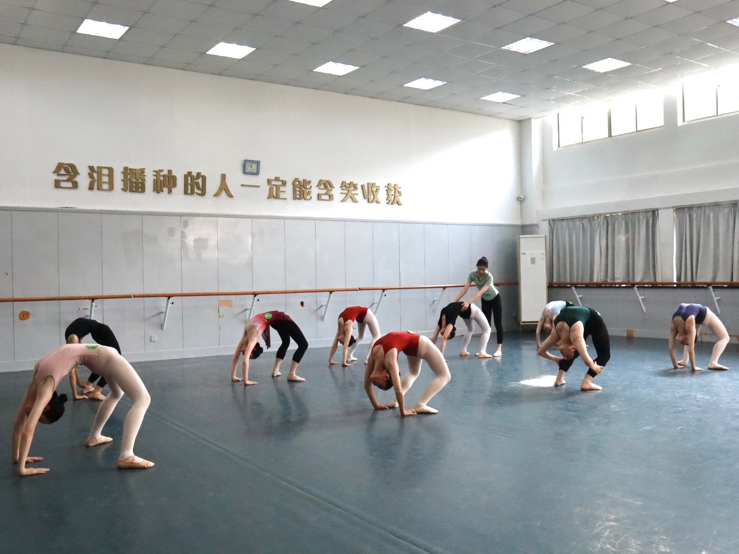 考试前,考场外的走廊里,考生们整装待发,做热身运动,调整心态,不断深呼吸。一个个青春靓丽的身影在为实现艺术梦想冲刺。