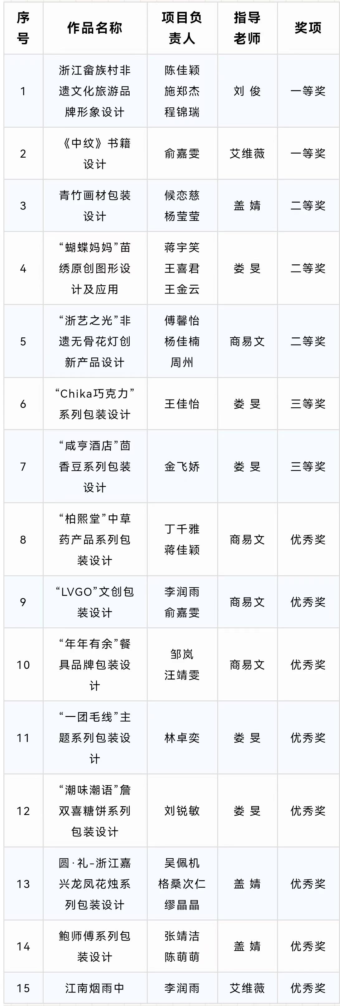 获奖名单