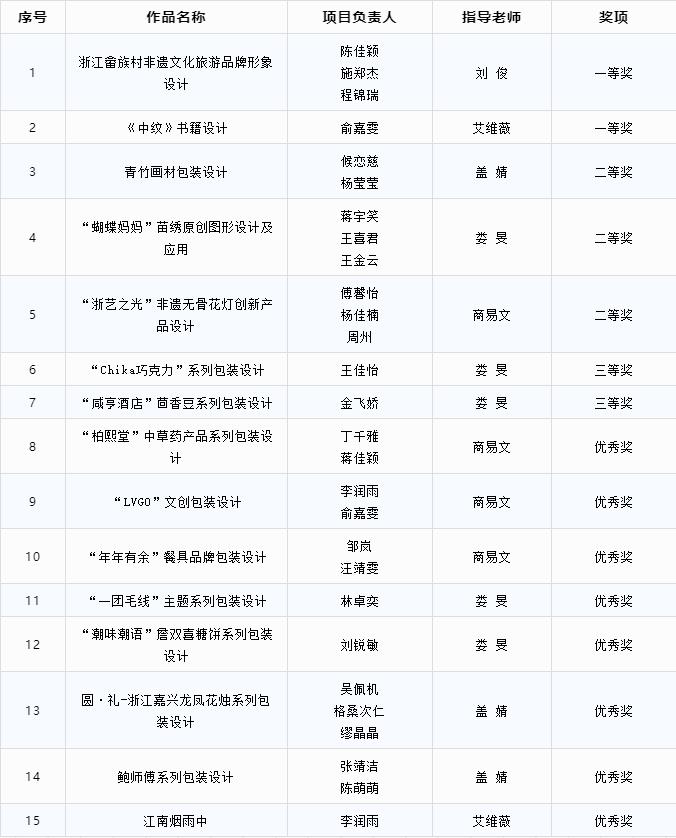为提高学生运用知识解决实际问题的能力,积极鼓励学生参加各类专业竞赛,培养具有创新精神和实践能力的高素质技术技能人才。近日,由设计学院广告艺术设计专业教师指导的学生参赛项目在2022中国包装创意设计大赛与2022全国(宁波)高校会展创意设计大赛中连获佳绩。