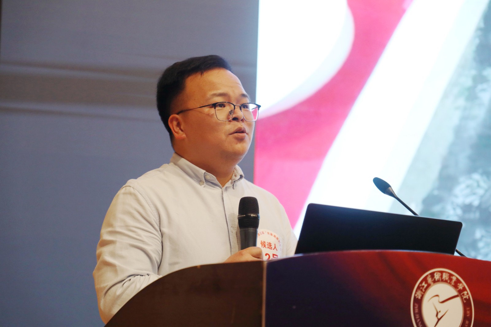 校党委书记薛亮,党委副书记夏开堂,党委委员、副院长沈军甫,党委委员、宣传部部长马向东,党委委员、组织部部长刘杨,相关职能部门和各二级学院党总支负责人、20名教师候选人、70名学生代表参加评选大会。