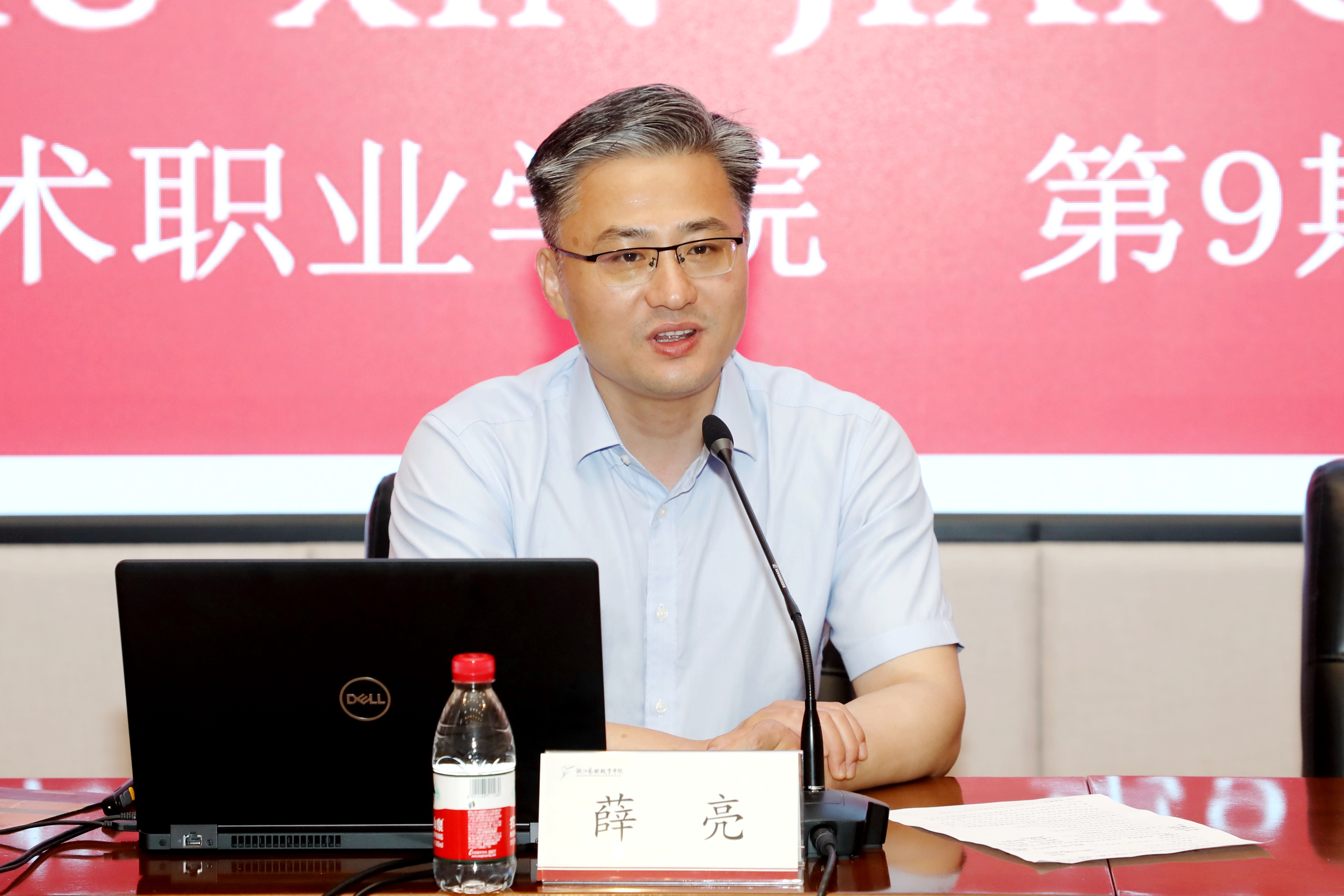 “前沿动态”环节,丁明军以《关于高职院校教学质量提升的研究与实践》为题,结合自身工作经验及实践思考,从高职院校教学质量与管理情况、高职院校教学质量管理创新实践及若干影响教学质量的要素解析等三个方面开展深入浅出的分析讲解。