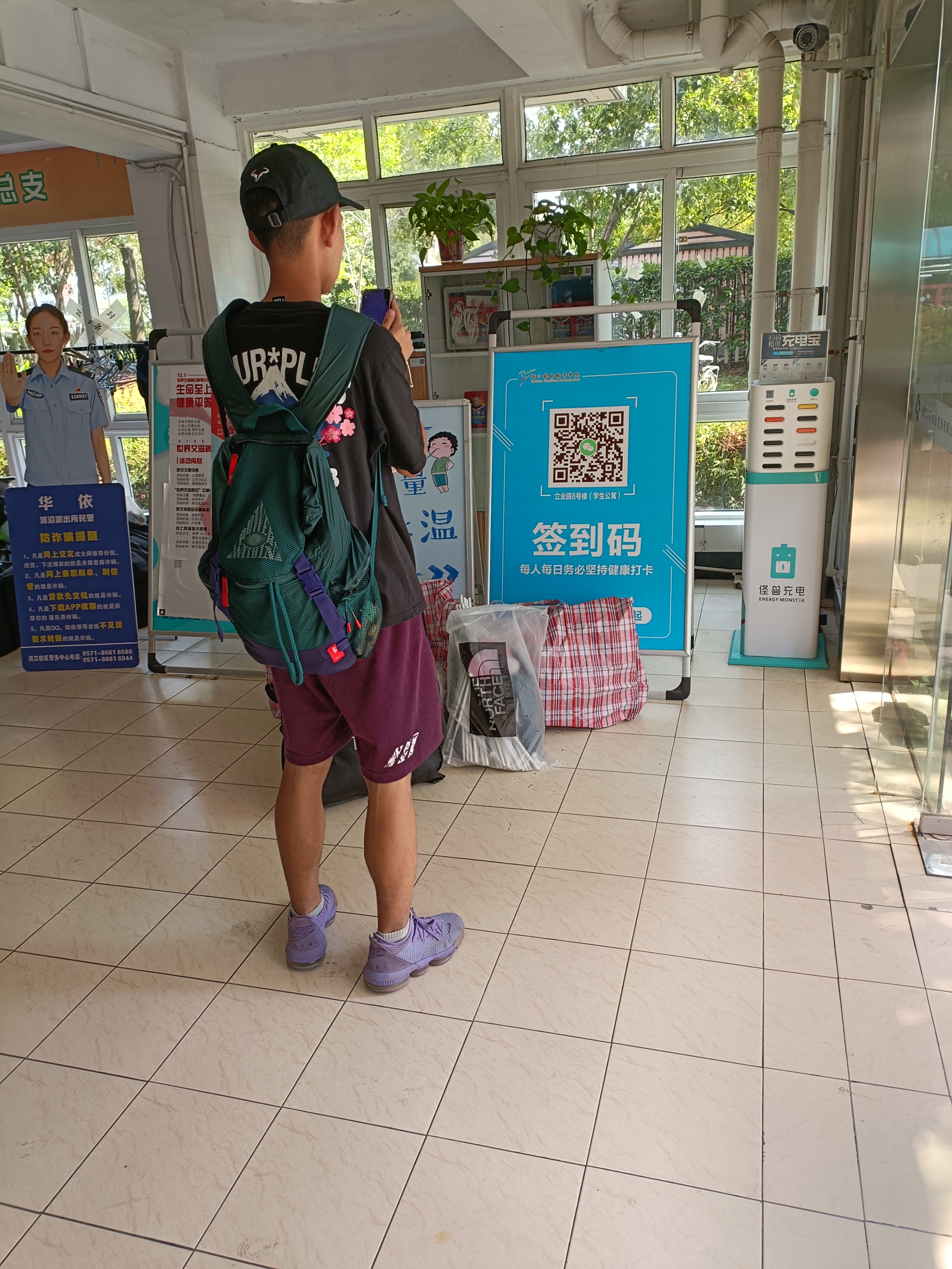 9月12日和13日,我院学生在公寓门口有序扫码报到。