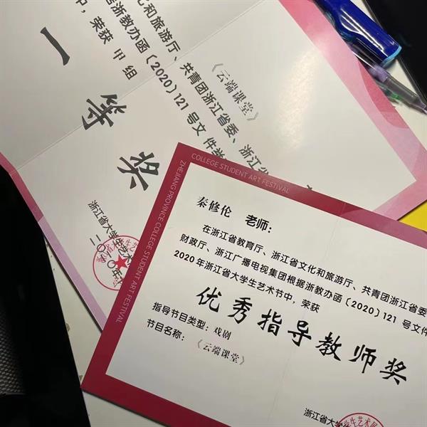 “舞台是我梦开始的地方,每一个因为和学生一起编排、创作而放弃的周末、假期,都是值得的。”从老师们身上接过无限感动,秦修伦将这份感恩继续传下去。在担任助教期间,他带领学生们前往各地参演时装周、浙江省大学生艺术节等活动,荣获优秀指导教师奖。“在教学相长中探寻艺术真谛,在服务人民中砥砺从艺初心”,这句话在秦修伦身上体现得淋漓尽致。他说:“浙艺戏剧影视学院赋予了我破釜沉舟的勇气和实现梦想的舞台,将这份勇气与梦想继续在学弟学妹们身上延续下去,是我在浙艺最骄傲的事情之一。”