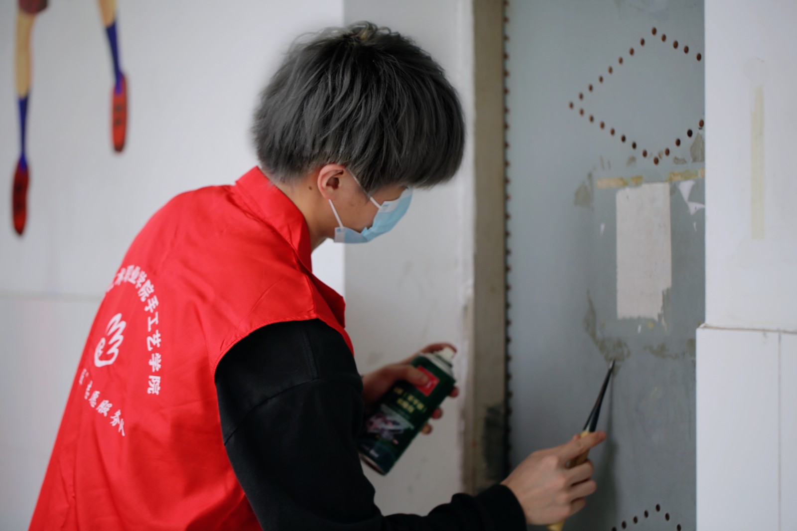 4月4日中午,手工艺学院艺小匠志愿服务队来到立志园11号楼开展清理寝室门口张贴物活动。在活动中,志愿者们手持垃圾袋等工具,热情高涨,对寝室门前的陈旧张贴物进行撕除。