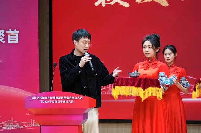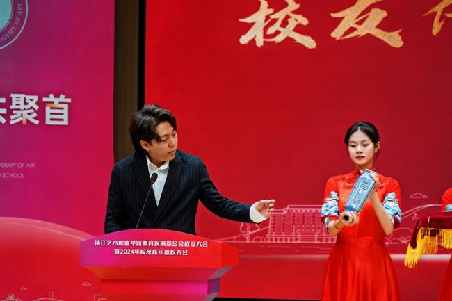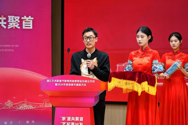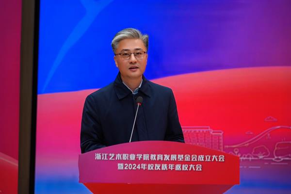 薛亮在致辞中表示,学校今时之风貌离不开一代代浙艺人的接续奋进,浙艺教育发展基金会的成立获得各方大力支持,让我们深切感受到企业对于学校艺术教育事业发展的关心以及各位校友对母校的拳拳赤子心。学校定会不负所望,集各界力量,在高质量发展的征程中打响文化艺术职业教育的“浙艺品牌”。