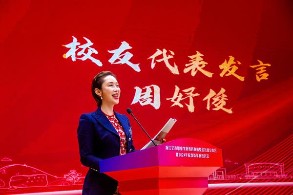 一级演员、中国戏剧梅花奖、文华奖、白玉兰奖获得者,90级越剧班校友周妤俊作为校友代表上台发言,她深情讲述了自己在浙艺学艺追艺的成长经历并对母校送上了最诚挚的祝福。