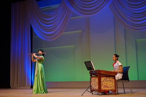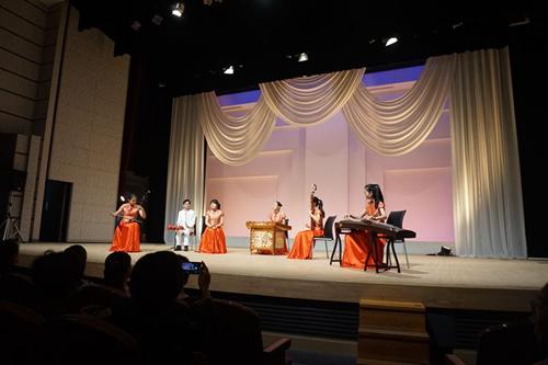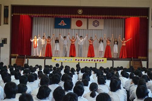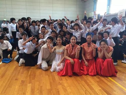 艺术团进入每个学校演出,均受到师生们的热情欢迎。艺术团师生为当地观众表演了一台充满中国民族特色的节目。民乐合奏《花好月圆》轻快明亮、悠扬婉转;女子独舞《孔雀飞来》富有民族特色的舞姿和明快的音乐令人陶醉;舞蹈《微笑之秋》展现了艺术团学生们的青春活力,展现了舞蹈美、音乐美和青春美,描绘出美好的抒情画面,感人肺腑;舞蹈《忍者学员》节奏动感,三个男生刚劲矫健的舞姿每次赢得观众阵阵掌声;笛子独奏《西湖春晓》、女子三人舞《小城雨巷》、民乐三重奏《倒垂廉》、男子独舞《恰同学少年》等精彩不断,独唱《哆啦a梦》每每让全场观众打着节拍和唱。演出过程中,每个节目结束,掌声都非常热烈。当表演《天空之城》《多啦a梦》《忍者学员》等源自日本的文艺节目时,台下学生们跟着一起哼唱,反应热烈。每场演出后的艺术交流中,当地学生一致表示对中国民族艺术的喜爱之情,连连赞叹节目“太棒了!从来没听到过这么好听的歌曲,没看到过这么好看的舞蹈!”艺术团学生还现场教授乐器演奏。多所学校则以合唱校歌来致谢艺术团师生。全场演出交流结束后,日本学生热情而不舍地涌到舞台前与艺术团师生们热情地交流,合影留念,连连鞠躬致谢。在社会公演中,艺术团学生还与日方艺术家共演歌曲《北国之春》《花会绽放》和舞蹈《樱幻想曲》等节目,引起当地观众的共鸣。