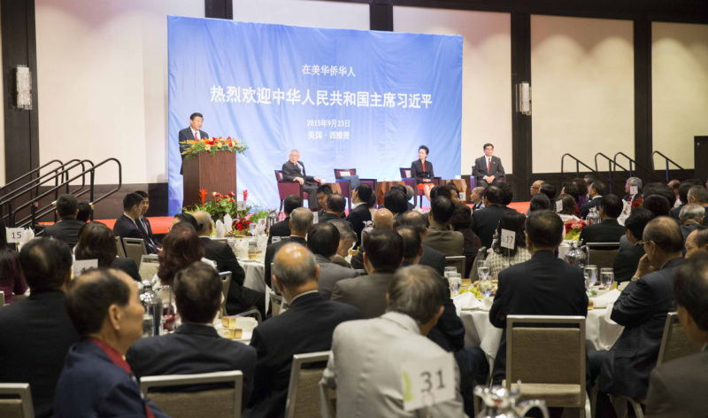 9月23日,国家主席习近平在西雅图出席美国侨界欢迎招待会并发表讲话。