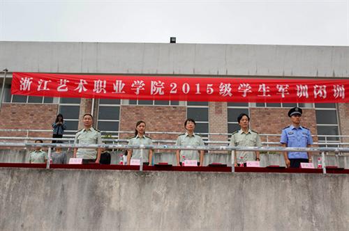 黄杭娟现场宣布军训获奖名单。15少儿音舞班、15编导班、15键盘班、15装饰班、15电声班、15多媒体班、15文管班获得军训会操先进集体;15少儿音舞、15舞台(二年制)班、15装饰(二年制)班、15文鉴(二年制)班、15电声(二年制)班、15广告班获得军训内务先进集体;陈品杰、裘梦钰、古顺义、韦奕飞、张宇、王剑鑫等30名同学获得军训优秀学员。