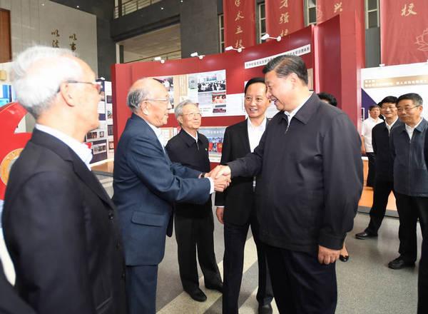 这是习近平参观校史及成果展。